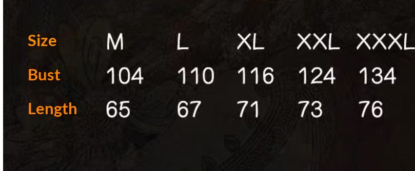 Sizes: 3XL, 2XL, M, L, XL